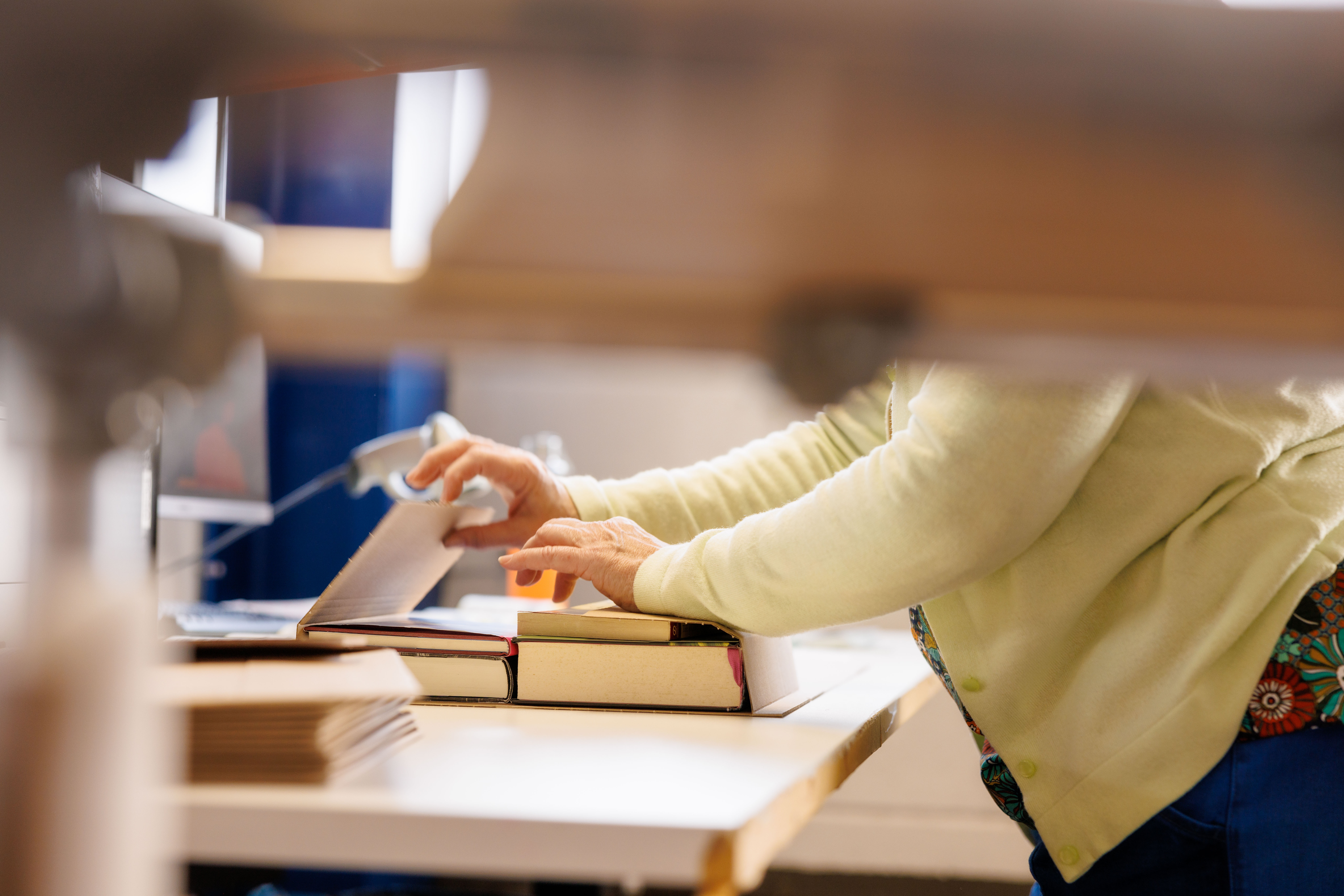 De boeken worden uitgepakt.
