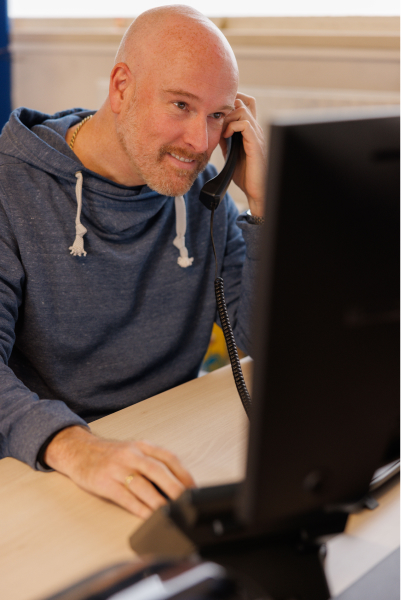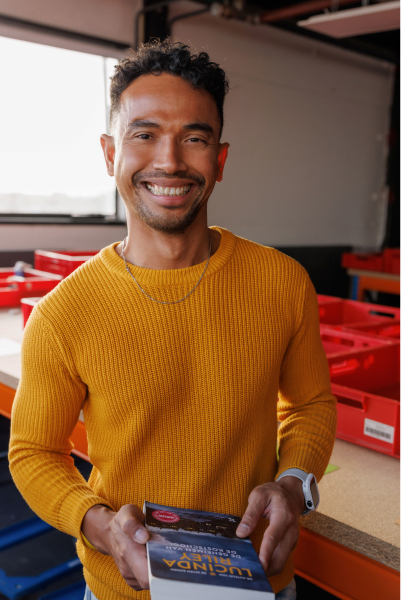Sander zoeft door het magazijn om ze netjes in de kast te zetten.